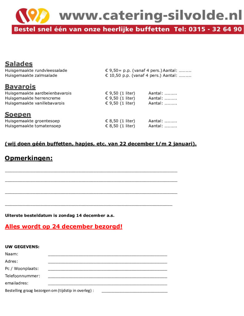(In deze periode doen wij geen buffetten, hapjes, etc).